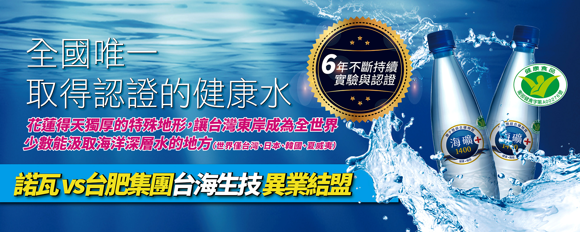 而另一方面,諾瓦未來亦評估從賣”尿”到跨足生技與大健康平台產業,楊聯智一直認為在致力還給大家清新的空氣之餘,更需要強健的身體,建構優質的身心靈環境並分享其人生觀給更多的人。故諾瓦即將與台肥公司百分之百投資之子公司,台灣海洋深層水股份有限公司異業結盟,共同行銷台灣海洋深層水,擴大通路與市場,增加海洋深層水能見度與知名度。台海經6年不斷努力持續實驗與認證,為全國唯一取得認證的「健康水」,可有效降低血液中總膽固醇。(衛部健食字第A00276號)