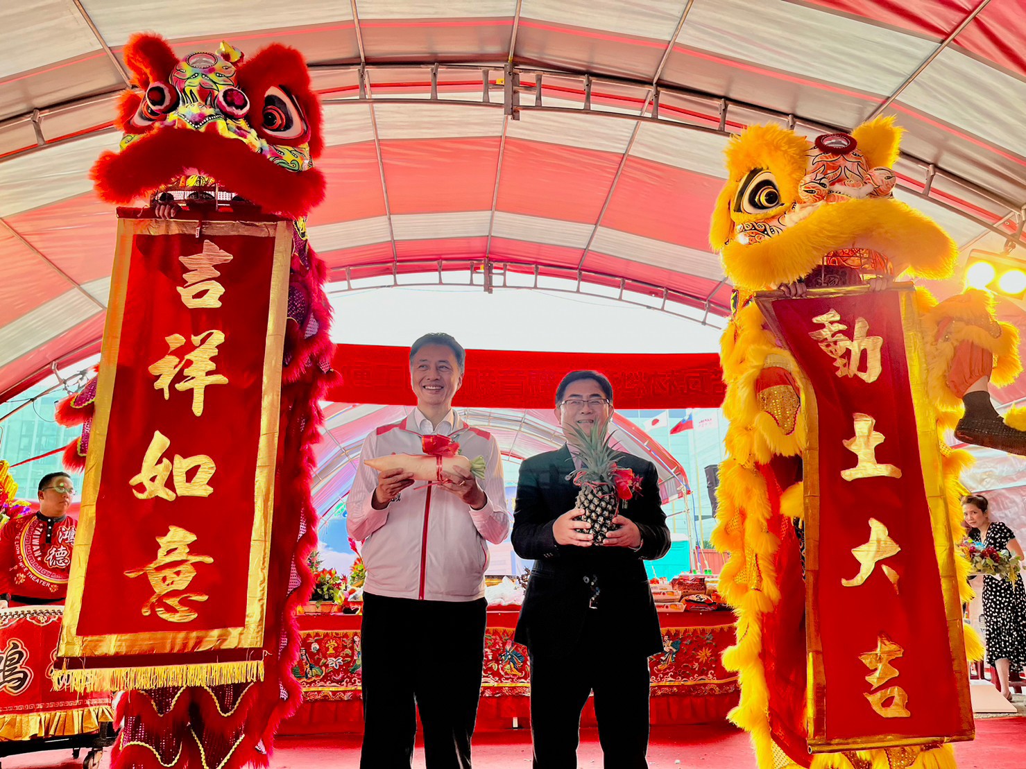 典禮上也邀請了桃園市經濟發展局張誠局長蒞臨動土典禮現場,桃園市工商發展投資策進會陳萬得副執行長也代表市長出席共同為新廠祈福起鏟。