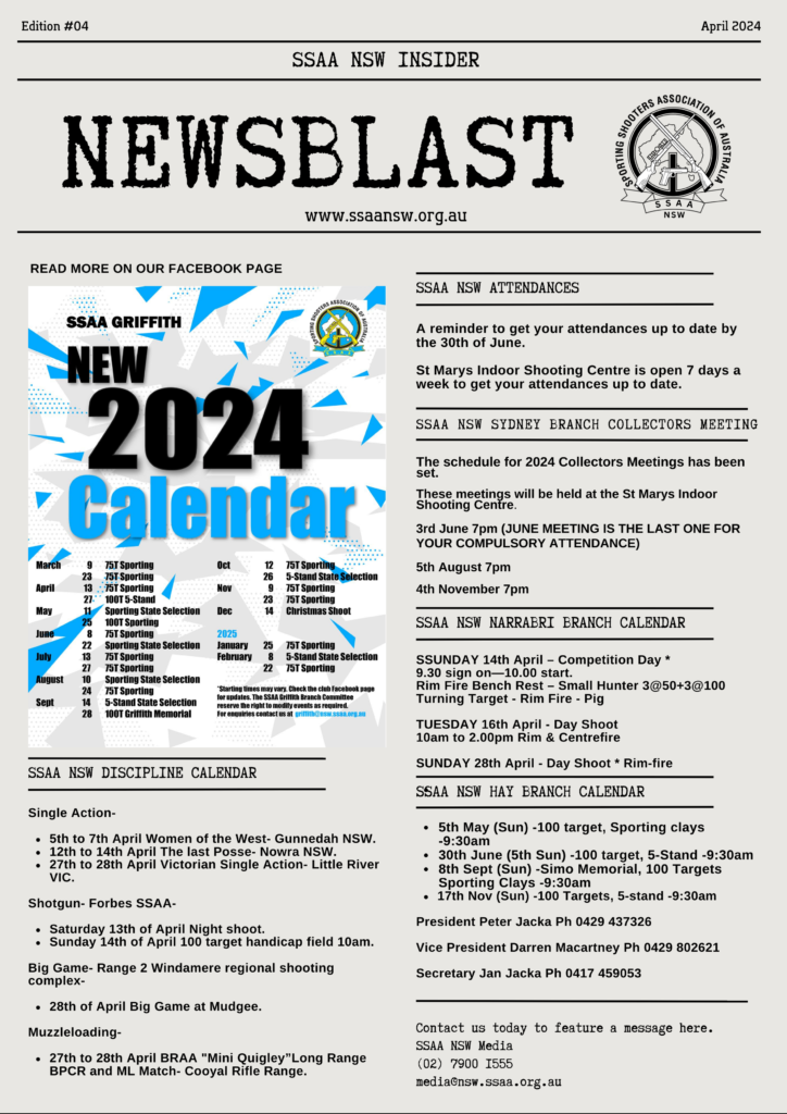 SSAA NSW Insider will consist of monthly calendars, Branch shoots and more.