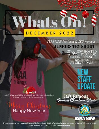 - BACK TO ALL NEWS What’s On! December 2022 Digital Magazine - December 20, 2022 The new edition of the SSAA NSW What’s On! December 2022 is here… Click on the image to read the full edition, enjoy!