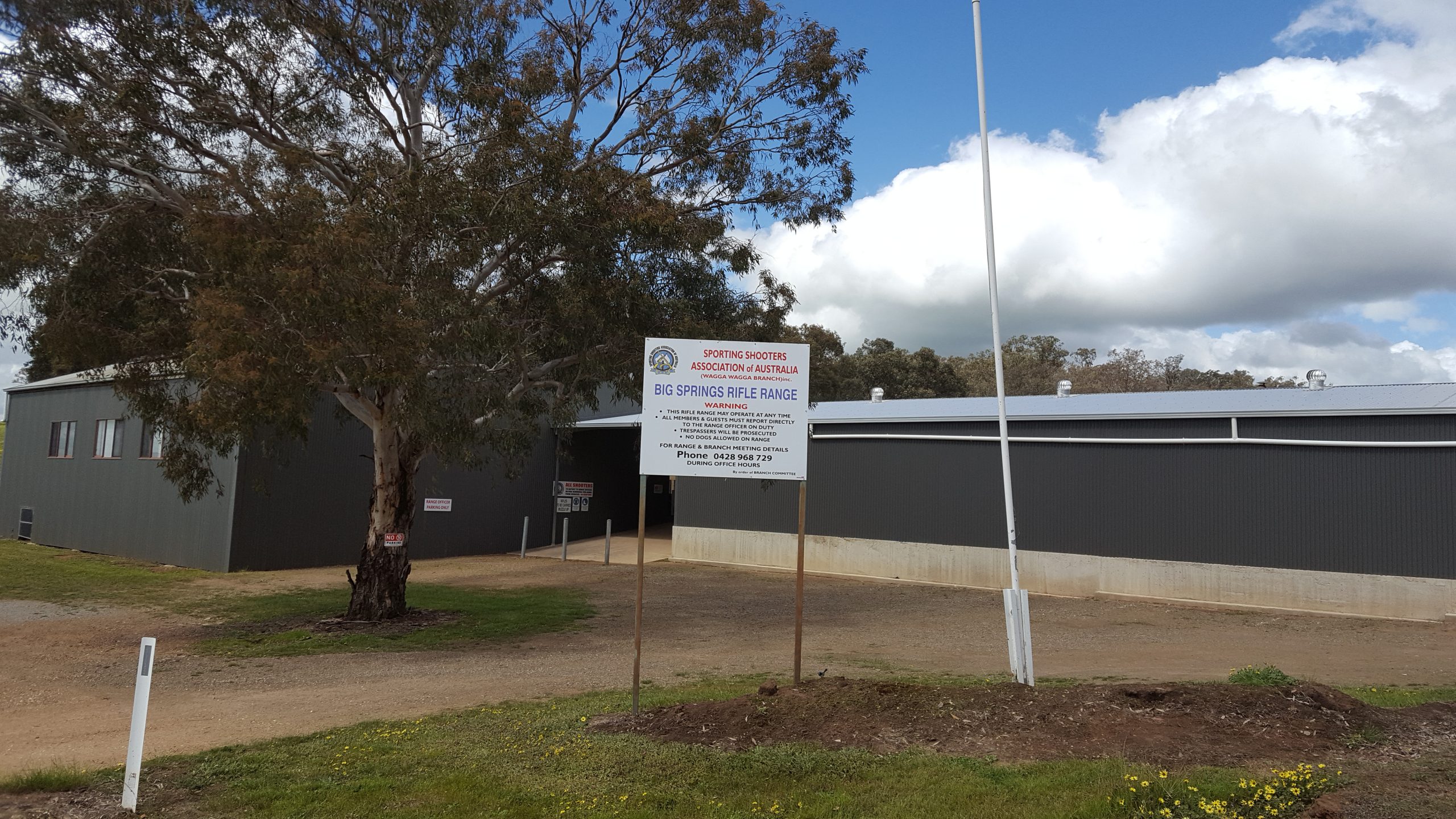The 44-hectare Big Springs Rifle Range, wholly owned by the Wagga branch of the Sporting Shooters Association of Australia (New South Wales) Limited, is located near Wagga Wagga in South Eastern NSW. Founded in 1991, the range is zoned rural/agricultural and is bordered by a national park and farmland. The range provides a covered 20 bench firing line catering to casual shooters, and competition shooters alike. Shotgun (5 stand), pistol (9 stand), and offhand (9 stand) ranges are also situated on the Big Springs site.
