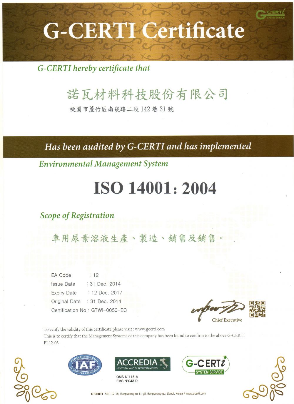諾瓦材料通過 ISO 9001 & ISO 14001 國際標準雙認證