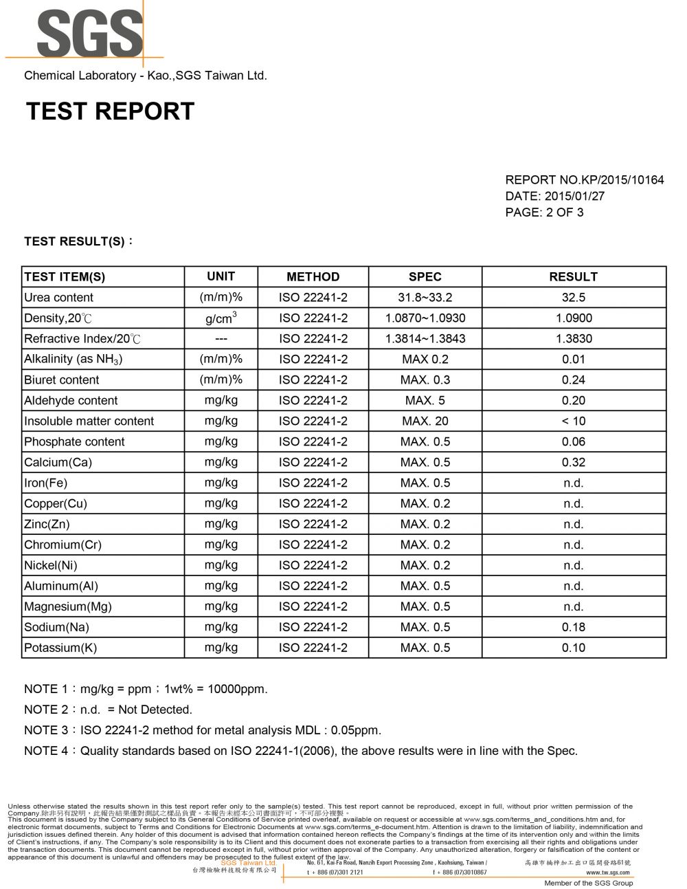 [SGS 品質檢驗] - 諾瓦車用尿素溶液品質檢測報告