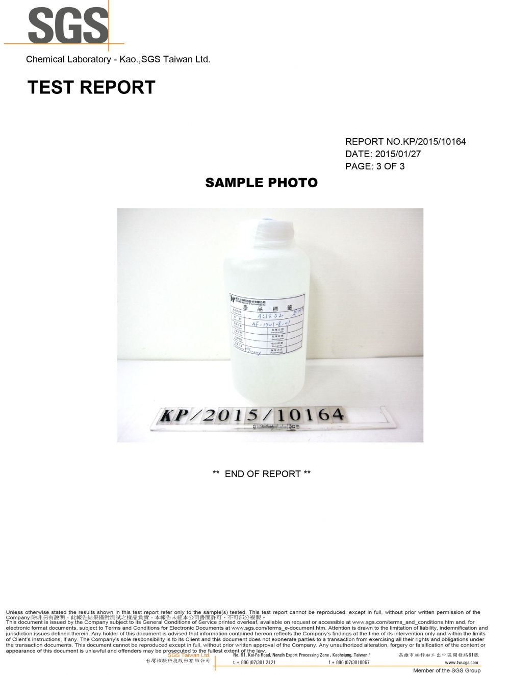 SGS 台灣檢驗科技股份有限公司 - 車用觸媒還原品質檢測報告