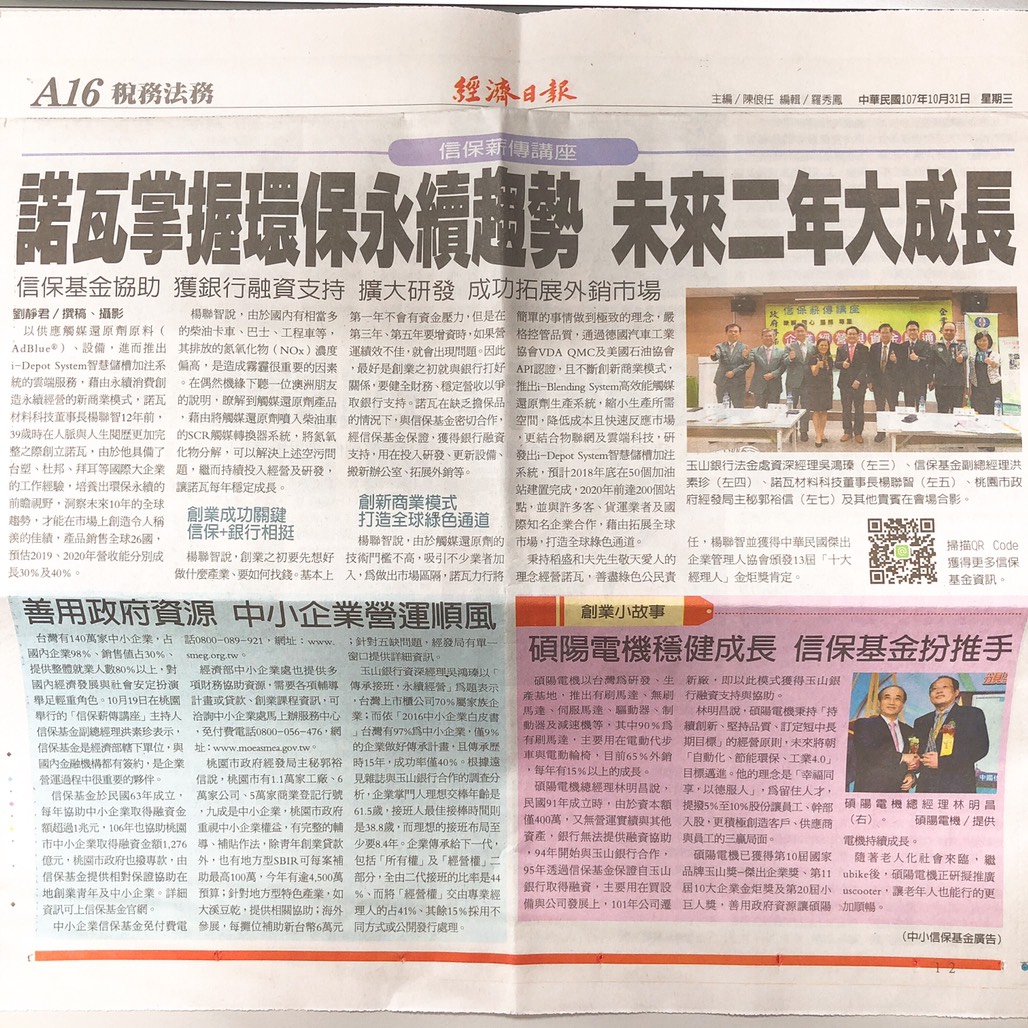諾瓦掌握環保永續趨勢 未來二年大成長