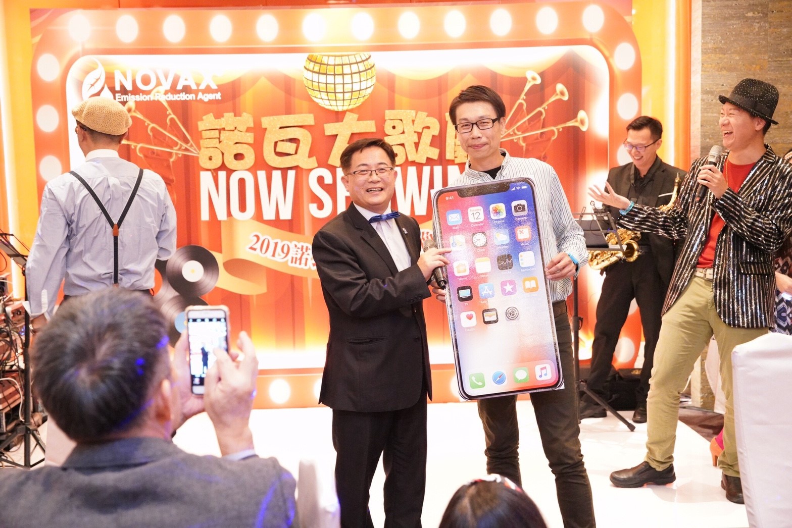 諾瓦於1/19日於尊爵飯店舉辨旺年會,今年主題是走「復古風」,不僅會場佈置流露濃濃的復古擺設和主題設計,同仁們也紛紛拿出衣櫃內的壓箱寶來精心打扮,穿上高腰喇叭褲、格紋套裝、花襯衫,再加上復古音樂,時光彷彿回到50年代大歌廳。董事長楊聯智則是以一身貓王裝驚豔四座,整個氛圍彷彿回到五、六〇年代,會場閃光燈不間斷,都是為了拍下這珍貴的復古打扮。
