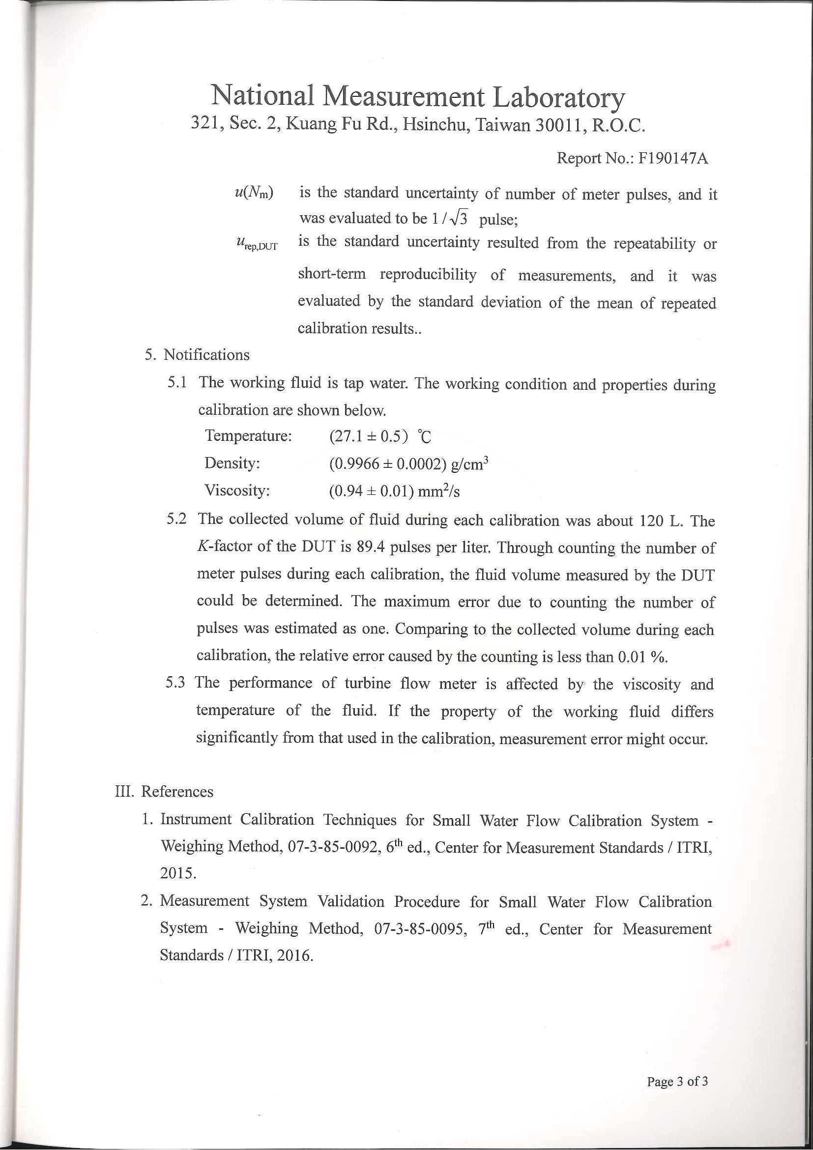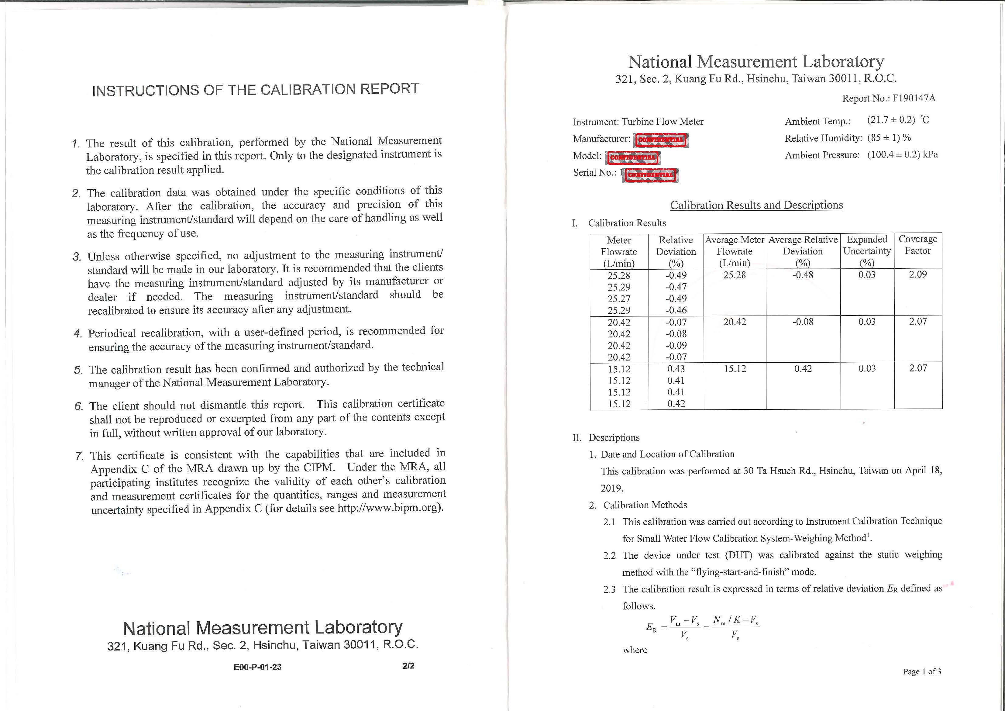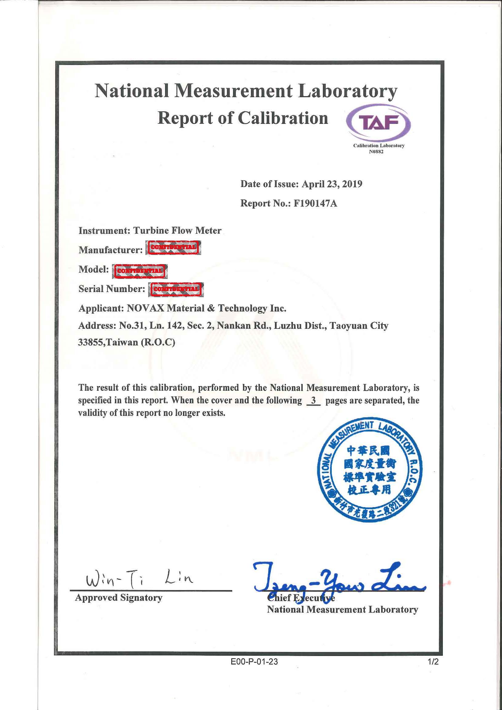National Measurement Laboratory Report of Calibration F190147A_April,2019