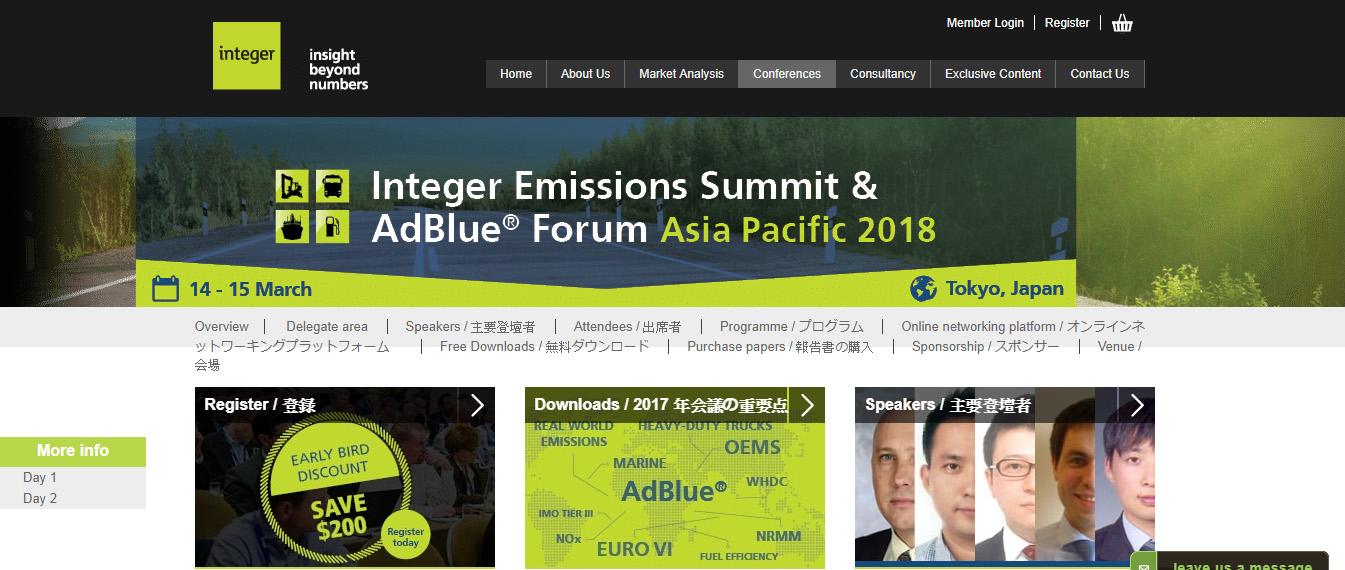 アジア太平洋integerエッミション サミット&AdBlue®フォーラムは2018年3月14日、15日の東京で開...