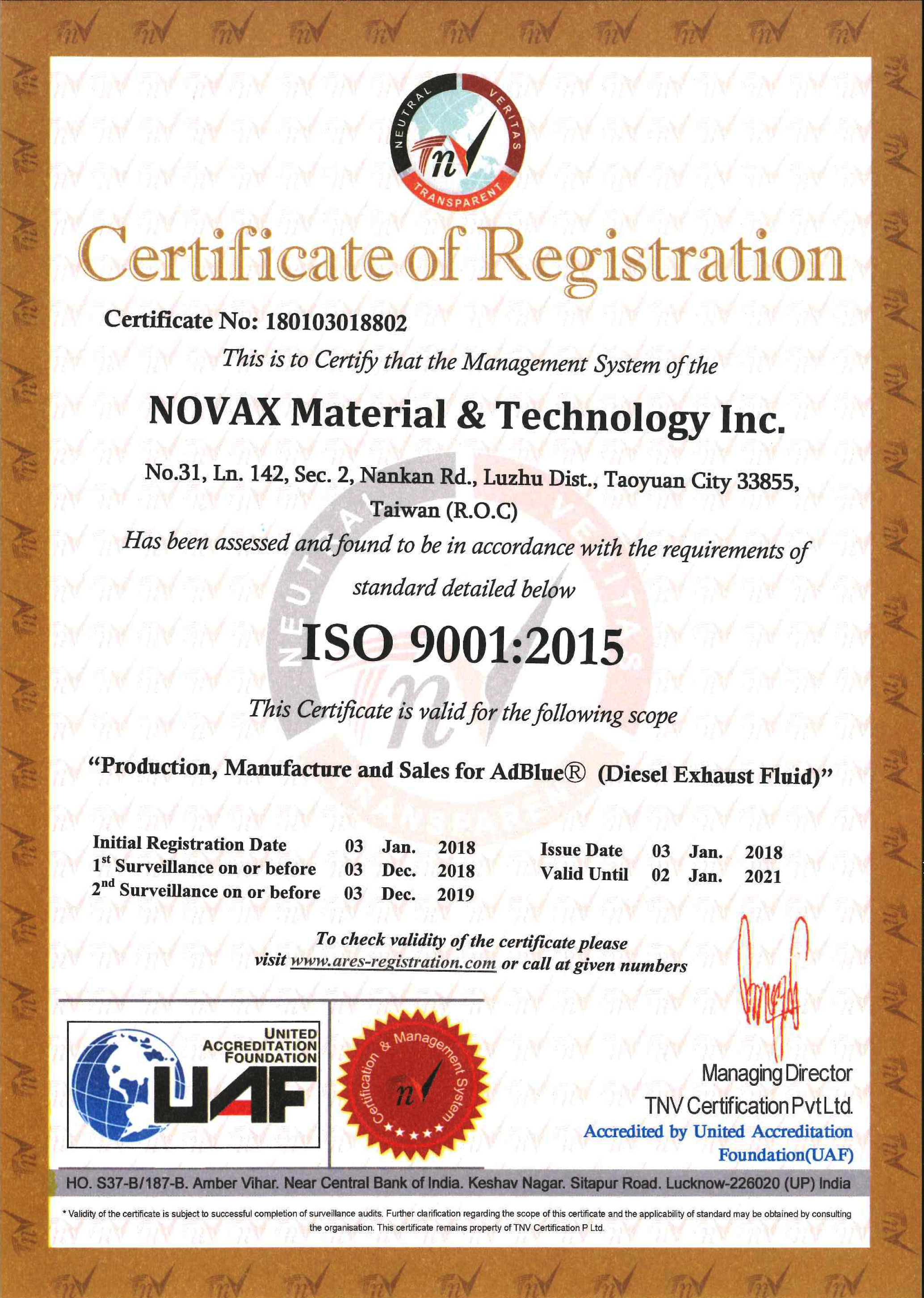 NOVAX ISO9001 2015 Certificate 2018-2021jpg